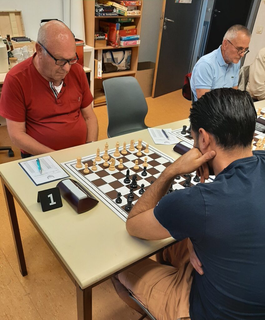 Auf Brett 1 spielte Helmut Baldemair gegen den starken Iraner Tarazi. Helmut kam nicht gut aus der Eröffnung und musste leider ziemlich schnell dem Gegner die Hand reichen.
