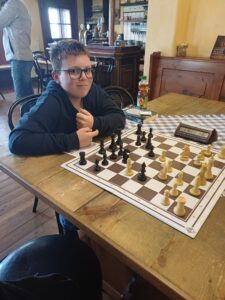 Erich zeigte von Beginn an eine konzentrierte Leistung. Bereits in der Eröffnung gewann er Material, da sein Gegner zu schnell spielte und mehrere taktische Motive übersah. Mit sicherem Spiel nutzte Erich seine bessere Stellung konsequent aus und setzte den gegnerischen König wenig später sauber matt. Ein souveräner Auftaktsieg für Hallein.