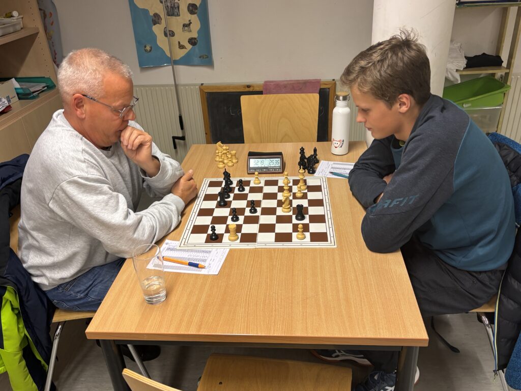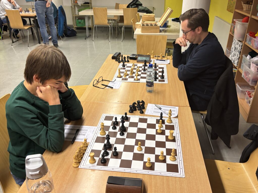 Felix kam in dieser Partie erstmalig in der heurigen Spielsaison mit einer ausgeglichenen Stellung aus der Eröffnung. Nach der großen Rochade von Peter startete Felix einen Königsangriff, aber Peter hatte die gleiche Idee. Beide rückten ihre Steine mit Vollgas gegen die gegnerische Königsstellung und versuchten einen Hebel zu finden. Rein optisch war jedes Ergebnis möglich, mit Ausnahme einer Punkteteilung. Doch die beiden überraschten uns alle, als es plötzlich hieß, die Partie ist remis. Zu diesem Zeitpunkt sah es so aus, als ob dieser halbe Punkt unsere komplette