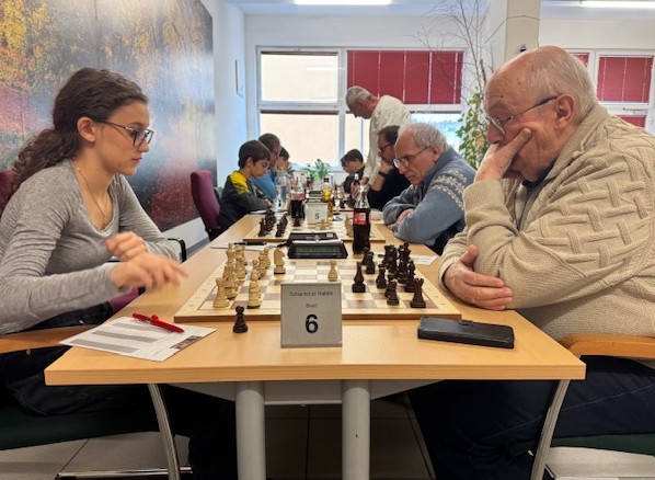 Ege spielte hochkonzentriert und kam sehr gut aus der Eröffnung. Ortrun kam im Verlauf der Partie immer mehr in die Defensive, lehnte aber trotzdem ein frühes Remis Angebot von Ege ab. Der Druck von Ege wurde immer stärker, und nach dem Tausch einiger Leichtfiguren stand er dann schon deutlich besser. Ortrun hat dann ihrerseits eine Punkteteilung vorgeschlagen, die Ege in Hinblick auf das Mannschaftsergebnis annahm. Diese Entscheidung war goldrichtig wie sich dann herausstellte.