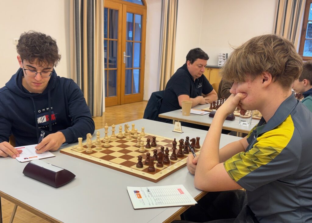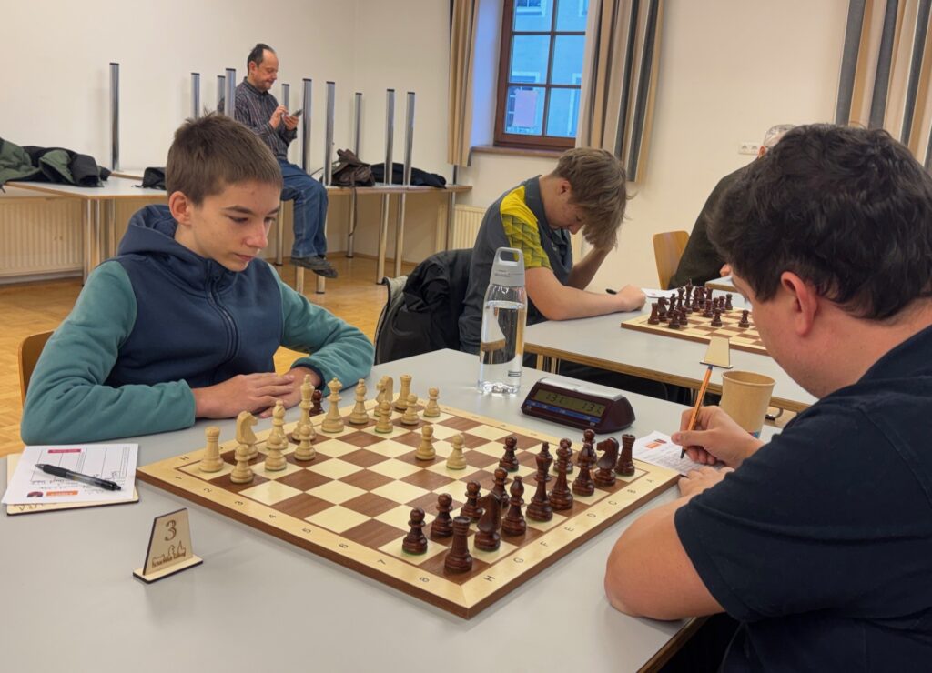 Auf Brett 1 hatte ich Johann Windhofer als Gegner. Eigentlich stand ich nach der Eröffnung etwas besser. Jedoch wollte ich kein Risiko eingehen. Ich baute immer mehr Druck auf die Stellung von Johann auf aber er verteidigte sehr umsichtig und so einigten wir uns nach 4 Stunden auf ein Remis.