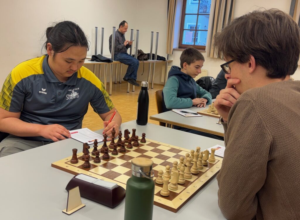 Shijir-Erdene hatte den Sebastian Gruber als Gegner. Dieser gewann bereits in der Eröffnung einen Bauern. Dies nutzte er sehr geschickt aus. Shijir-Erdene wollte noch mit ein paar orthodoxen Zügen die Partie an sich reißen aber sein Gegner lies sich auf nicht mehr ein und so gewann auch dieser.