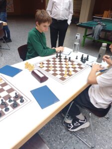 Lukas kam deutlich besser aus der Eröffnung und erspielte sich eine angenehme Stellung, auch ohne direkten Materialvorteil. Das Mittelspiel wurde jedoch zunehmend kompliziert, und im weiteren Verlauf verlor er zwei Bauern. Sein Gegner hatte gute taktische Möglichkeiten, übersah diese jedoch. Lukas blieb ruhig, spielte sehr genau und machte keine Fehler – am Ende konnte er die Partie sogar noch gewinnen. Eine starke kämpferische Leistung.